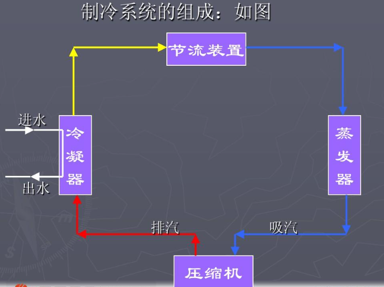 五、冷凝溫度變化對制冷系統影響:機組部件有關溫度都有正常的溫度范圍,超出這個范圍就屬不正常的狀態。造成這些不正常的因素可能故障,也可能是調整不正確,但都要分析它的原因,并及時處理或檢查。這些溫度點難以用溫度計測量,一般只能用手感來估計,然后判斷是否正常。(1) 排氣溫度的影響注意:夏季情況下,壓縮機的排氣溫度是比較高的,手無法觸摸。按國家標準規定,R22的制冷系統的排氣溫度應該不會超過150℃,超過這溫度線屬不正常狀況。排氣溫度非常高:壓縮機的吸氣溫度非常高,或是冷凝溫度非常高所造成,必須引起注意。排氣溫度過低:手摸排氣管不燙手,這說明吸氣溫度特別低,壓縮機可能濕行程運行或系統工質相當少的運行狀態。(2) 機殼溫度變化對壓縮機和制冷系統的影響全封閉往復活塞壓縮機機殼外表的溫度場可分兩部分:上機殼:受吸入蒸氣的影響,溫度比較低,處在微熱或稍涼范圍,估計在30℃左右,在吸氣管的周圍局部機殼表面有結露水的可能。下機殼:電動機的發熱量和被冷凍油帶出的摩擦熱量,主要由蒸氣帶出機殼。1) 機殼溫度過高的影響及原因 機殼表面溫度超過正常范圍制冷系統的吸氣溫度過高(高于15℃);過高的熱蒸氣進入壓縮機,吸收機殼內熱量后,使蒸氣的溫度更高,從而使機殼的溫度上升;過熱蒸氣的溫度上升很高,機殼的溫度也升得很高,對油的冷卻不利,這會影響運動零件的潤滑,加速磨損,嚴重者使軸承抱軸,另外還會引起排氣溫度上升。2) 機殼溫度過低的影響及原因 機殼表面溫度低于正常范圍吸氣溫度太低(低于15℃);它對冷凍油和電動機繞組的冷卻都有利,但制冷量有所下降;當吸氣溫度特別低時,會使大半只機殼結露,就有液擊的危險,這是對壓縮機的致命打擊,應特別注意;同時冷凍油內溶解大量的制冷劑,不利于運動零件的潤滑。(3) 凝器的溫度狀況正常情況:前半部散熱管很熱,且其溫度有緩慢緩慢的逐步下降的均勢。后半部散熱管的熱感程度與前半部相比有較大的降低,這是由于后半部管內制冷劑已逐步液化,已達到冷凝溫度和過冷溫度。不正常情況:前半部不太熱,后半部接近常溫(環境溫度),其原因是壓縮機吸信濕蒸汽制冷劑時或制冷劑量不足。另一種是整個冷凝管都很熱,其原因是制冷劑量過多或通風量小,或環境溫度高。正常情況上半部比較熱下半部是溫熱。不正常情況整個殼體都不太熱,其原因是制冷劑量不夠;另一種情況是整個殼體都很熱,其原因是冷卻水量不足或散熱效果差。(4) 貯液器的溫度狀況 在正常情況下,吸氣管用手摸感覺很涼,并結有露水。冷凝器散熱差,冷凝溫度高或制冷劑量充注過多。(5) 液體管溫度狀況溫熱;不正常:比較熱。冷凝器散熱差,冷凝溫度高或制冷劑流量過多。(6) 過濾器溫度狀況它有一個突出的不正常現象,就數濾器可能會發涼,其原因數濾網孔被污泥阻塞,使過濾器不暢通,當制冷劑流過濾網時,發生了節流現象,即有一部分液體氣化吸熱,使過濾器發涼,嚴重的會結露。另一種不正常的現象數濾器不熱,與環境溫度相當,其原因數濾網完全堵塞不通,制冷劑不能流動。(7) 吸氣管的溫度狀況正常情況下,吸氣管用手摸感覺很涼,并結有露水。不正常情況下,一是吸氣管較冷、露水太多,以致使機殼大面積結露。原因是制冷劑流量過大,液體不能在蒸發器內全部氣化,有液體回流現象。