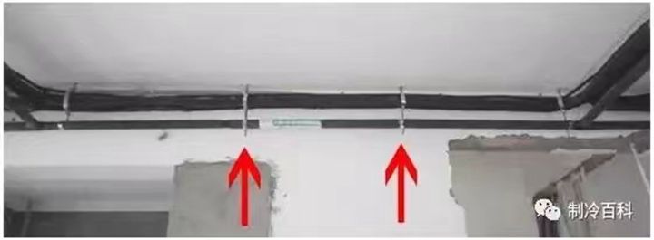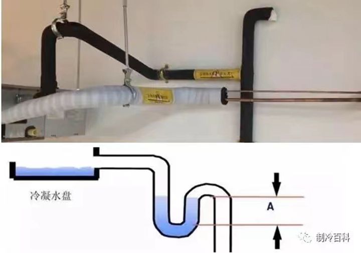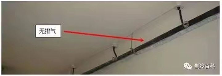 3、冷凝水管安裝不良導致排水不暢,積水從積水盤溢出,冷凝水管安裝無坡度