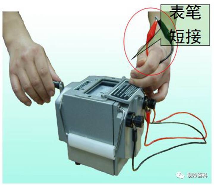 短路試驗(yàn):將端鈕L和E短接,緩慢搖動(dòng)手柄,觀察指針是否指在標(biāo)度尺的“0”位置。