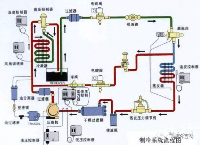 1、制冷劑泄漏:系統中制冷劑泄漏后制冷量不足,吸、排氣壓力低,膨脹閥處能聽到比平時大得多的斷續的“吱吱”氣流聲。蒸發器不掛霜或掛角少量的浮霜,若調大膨脹閥孔,吸氣壓力仍無大變化,停機后系統內平衡壓力一般低于相同環境溫度所對應的飽和壓力。
