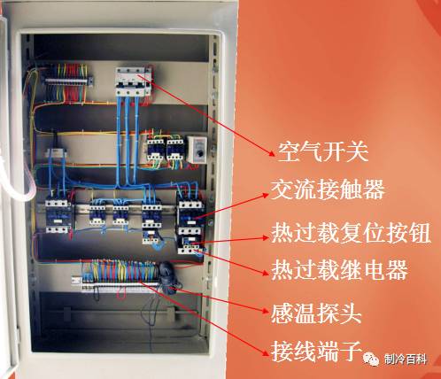 空氣開關(guān):總制冷設(shè)備開關(guān),控制系統(tǒng)的開停且系統(tǒng)電流過大時(shí)瞬間內(nèi)跳閘保護(hù)。