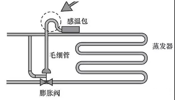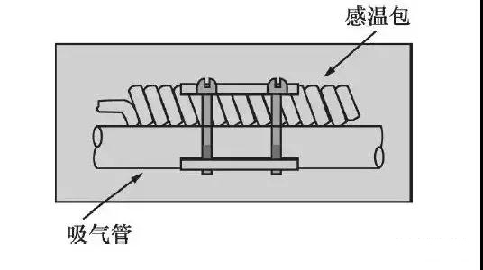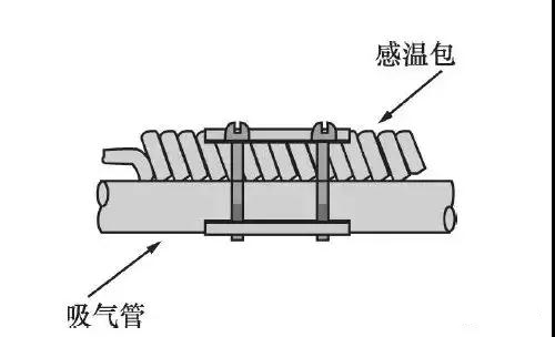 1、必須安裝在吸氣管的上方,同時需要保證感溫包緊貼著吸氣管,改善感溫包與吸氣管中制冷劑的傳熱效果,減少時間滯后。