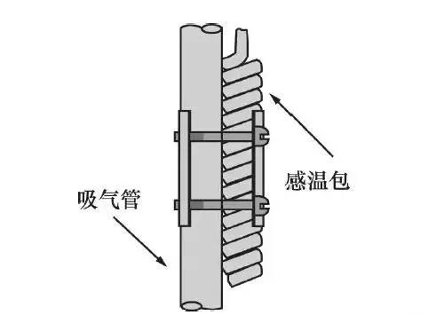 對于32 ~ 35 mm 的管徑,感溫包宜安裝在吸氣管的“4 點半”位置。