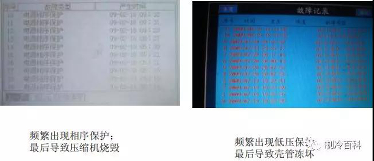 1、排氣溫度低,不能回油;2、安全閥沖開;3、機組不能加載;4、高壓保護5、低壓保護6、高低壓差保護,油壓差保護7、壓縮機不能正常開啟8、逆缺相保護9、開水泵后冷凝器內突然出現大量液體。