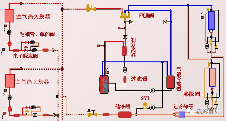 VRV變頻空調機組的工作原理:多聯機就是用一個大功率的室外主機帶動多個室內機,由于采取的是并聯方式,所以可方便地進行分區控制。輸送能量的介質是制冷劑,可以用細小的銅管代替粗大的風管,噪音也大大降低。由于冷媒分流技術和電氣控制技術需要有較高的水準,并且零部件的專用性很強。