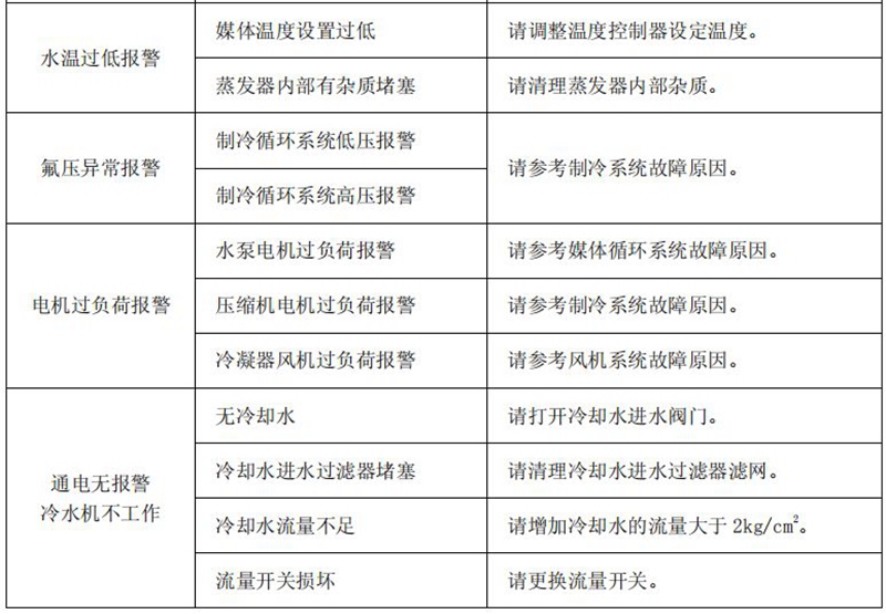 蒸發(fā)器中的液態(tài)制冷劑吸收水中的熱量并開始蒸發(fā),液態(tài)制冷劑亦完全蒸發(fā)變?yōu)闅鈶B(tài)后被壓縮機吸入并壓縮,氣態(tài)制冷劑通過冷凝器吸收熱量,凝結成液體,通過熱力膨脹閥(或毛細管)節(jié)流后變成低溫低壓制冷劑進入蒸發(fā)器,完成制冷劑循環(huán)過程。